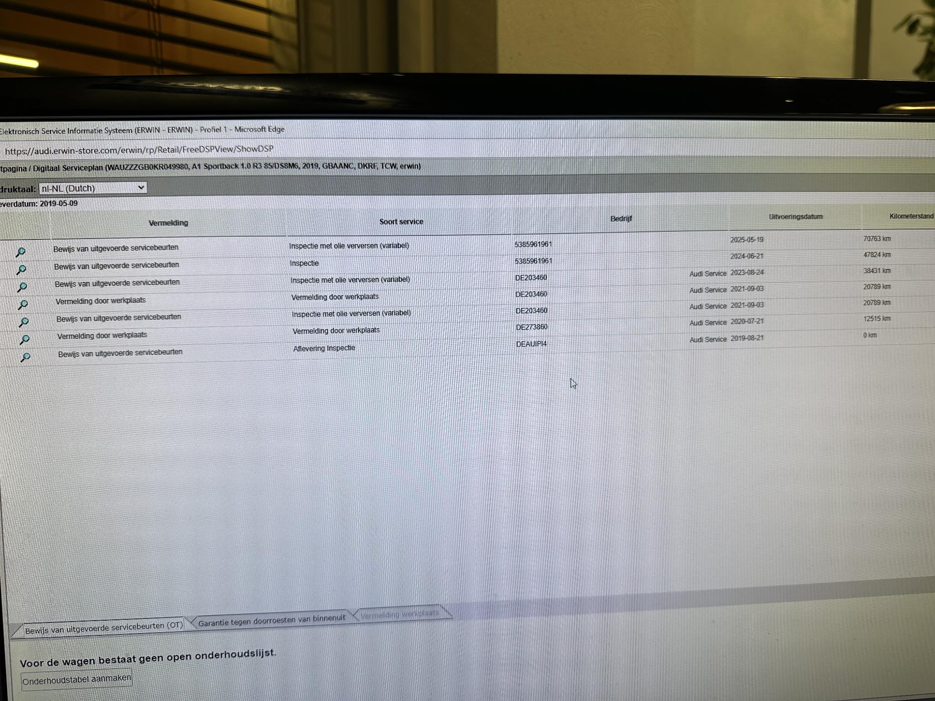 - Onderhoudshistorie aanwezig